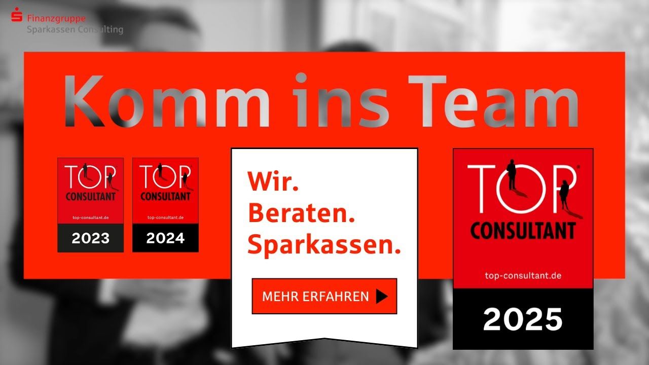 Die Sparkassen Consulting GmbH ist ein wachsendes Beratungsunternehmen mit Hauptsitz in München. Seit über 30 Jahren begleiten wir Sparkassen und Verbundpartner auf dem Weg zu nachhaltigem Geschäftserfolg. Über 80 erfahrene Beraterinnen und Berater freuen sich darauf, gemeinsam mit dir neue Maßstäbe zu setzen.